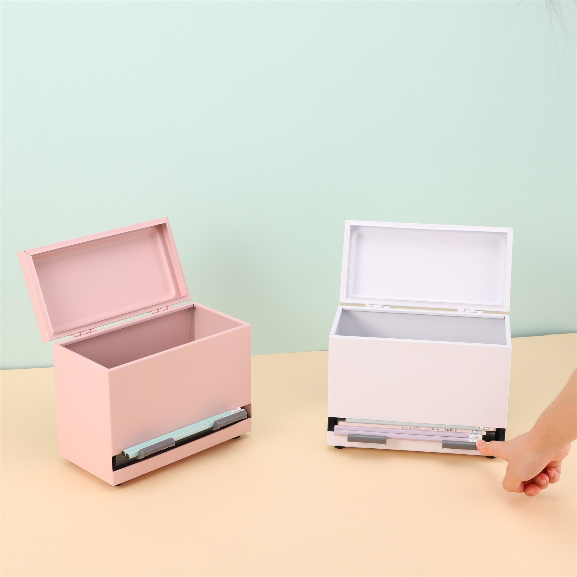多機能ステンレス製ストローボックス プッシュ式ペンケース 便利で実用的な蓋付きストローボックス ストローボックス ペンケース