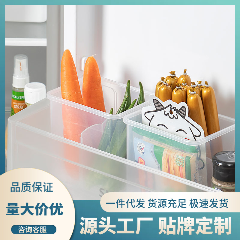 シンプルで透明なプラスチック冷蔵庫の分格果物と野菜の分類収納ケースのデスクトップ事務用文房具の雑物を分類して整理します。