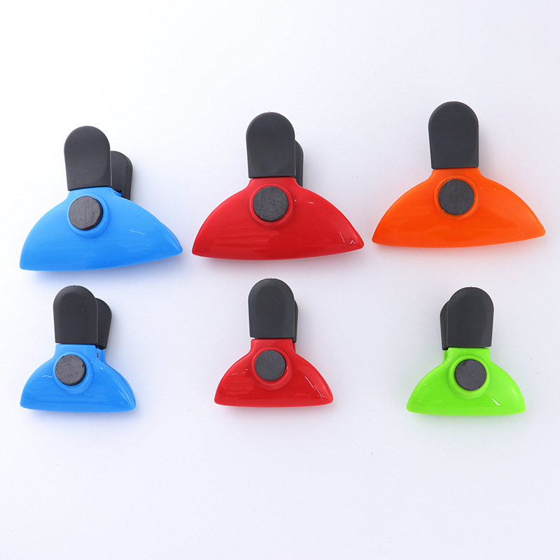 スポット卸売キッチン磁気シールクリップマルチカラースナック防湿保存プラスチッククリップ冷蔵庫磁気シールクリップ
