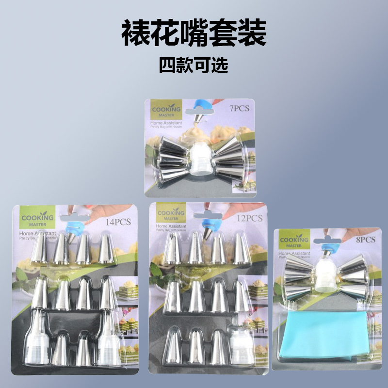 ステンレス製表装口セット厚手表装袋ケーキクリーム焙煎補助具セット8/12点セット
