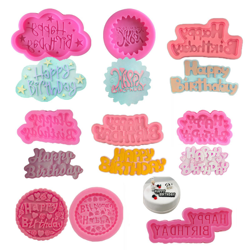 ハッピーバースデーフォンダンケーキデコレーションシリコンモールドDIYパーティーラベルベーキングモールド