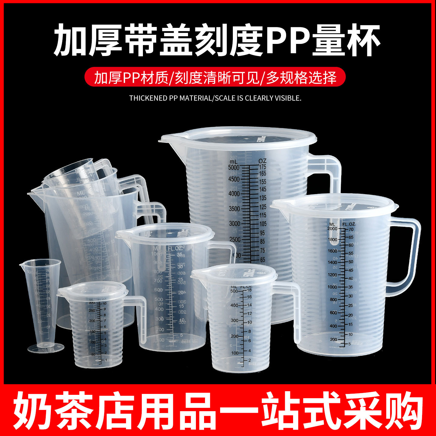 プラスチックスケール付き計量カップ100ml 250m500ml 1000ml 2000ml 3000ml 5000ミリリットルpp計量カップ