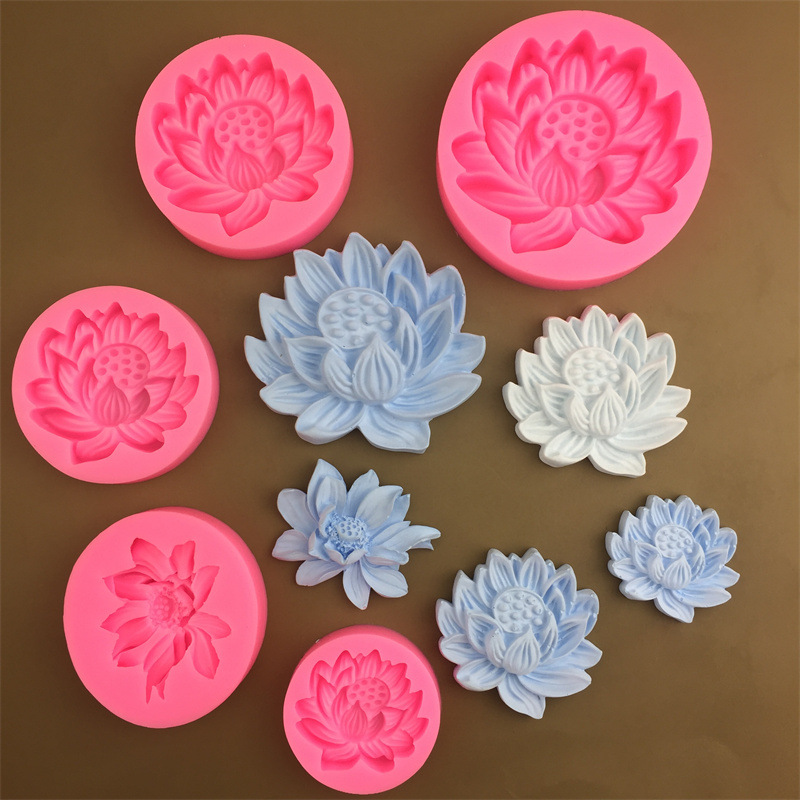蓮の花の大きいサイズの中で小さいサイズのシリカゲルの鋳型のハスの花のチョコレートはあめをひっくり返します。