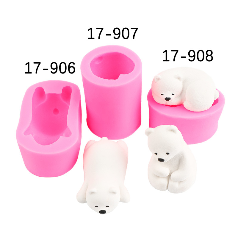 三種類のホッキョクグマのシリカゲルの鋳型がうつぶせになります。