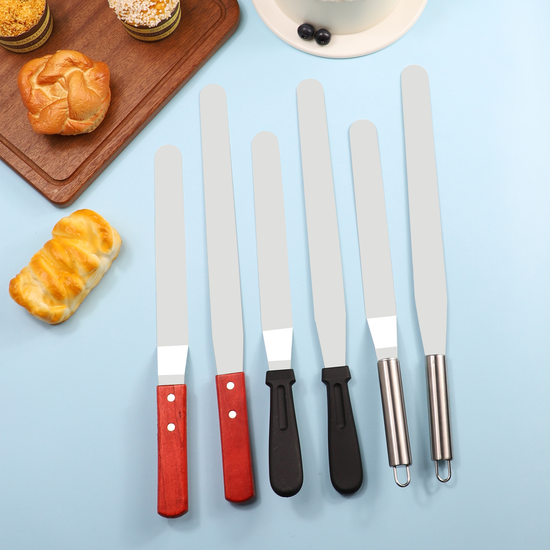 在庫あり ステンレス製 厚手 家庭用 ケーキ用 直線・曲線両用 プラスチックハンドル ベーキングクリーム用 木製ハンドル スパチュラ/スクレーパー