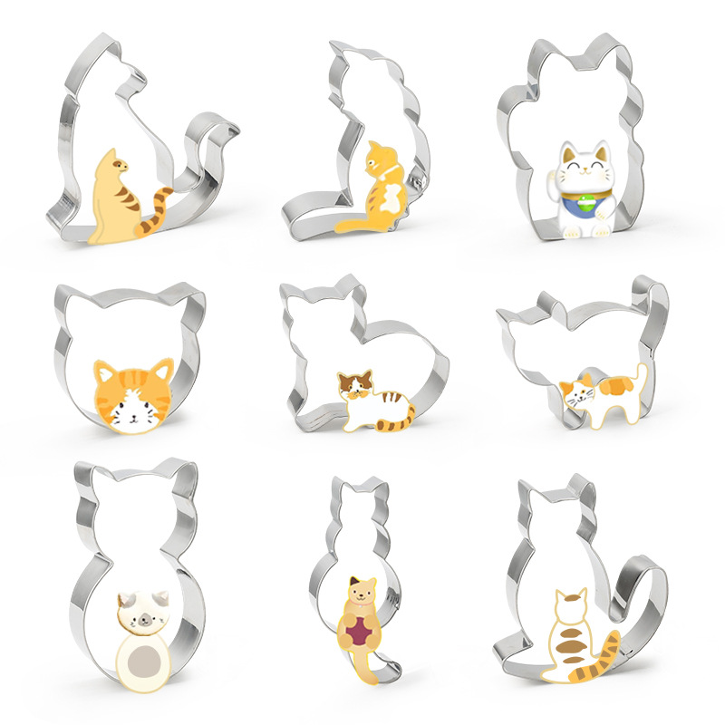 クリエイティブ子猫クッキー型 9 ピースかわいい漫画子猫クッキー型ベーキングガジェットフルーツ切断型
