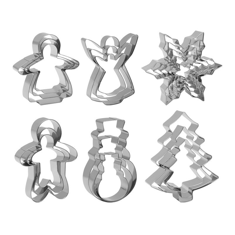 メーカー卸売りクリスマス六角星ハート型12点セットステンレスビスケット金型クッキー焙煎ツール