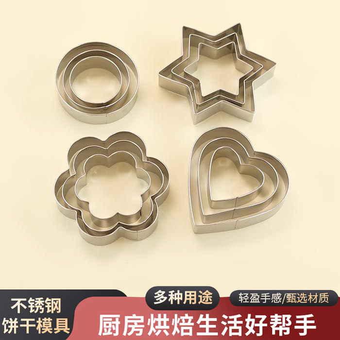 ステンレス12点セットビスケット金型ハート型星花形円形ケーキ型焙煎ツール型切りセット