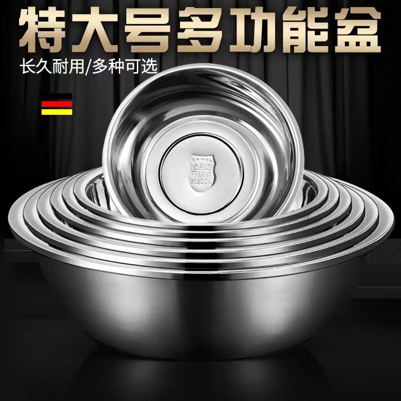 304ステンレスのたらいは多くて洗面器の大きいサイズの野菜のたらいを洗ってスープのたらいの食堂のスープの碗の商用のたらいの洗面器の洗面器を厚くします。