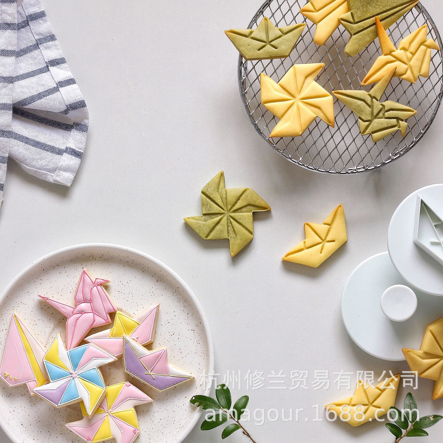 Amagourレトロ折り紙飛行機千羽鶴風車紙船3dスプリング押しビスケットマントー金型