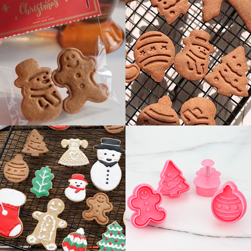 圣诞节立体圣诞树雪人弹簧按压饼干模糖霜翻糖切模烘焙模具4只装