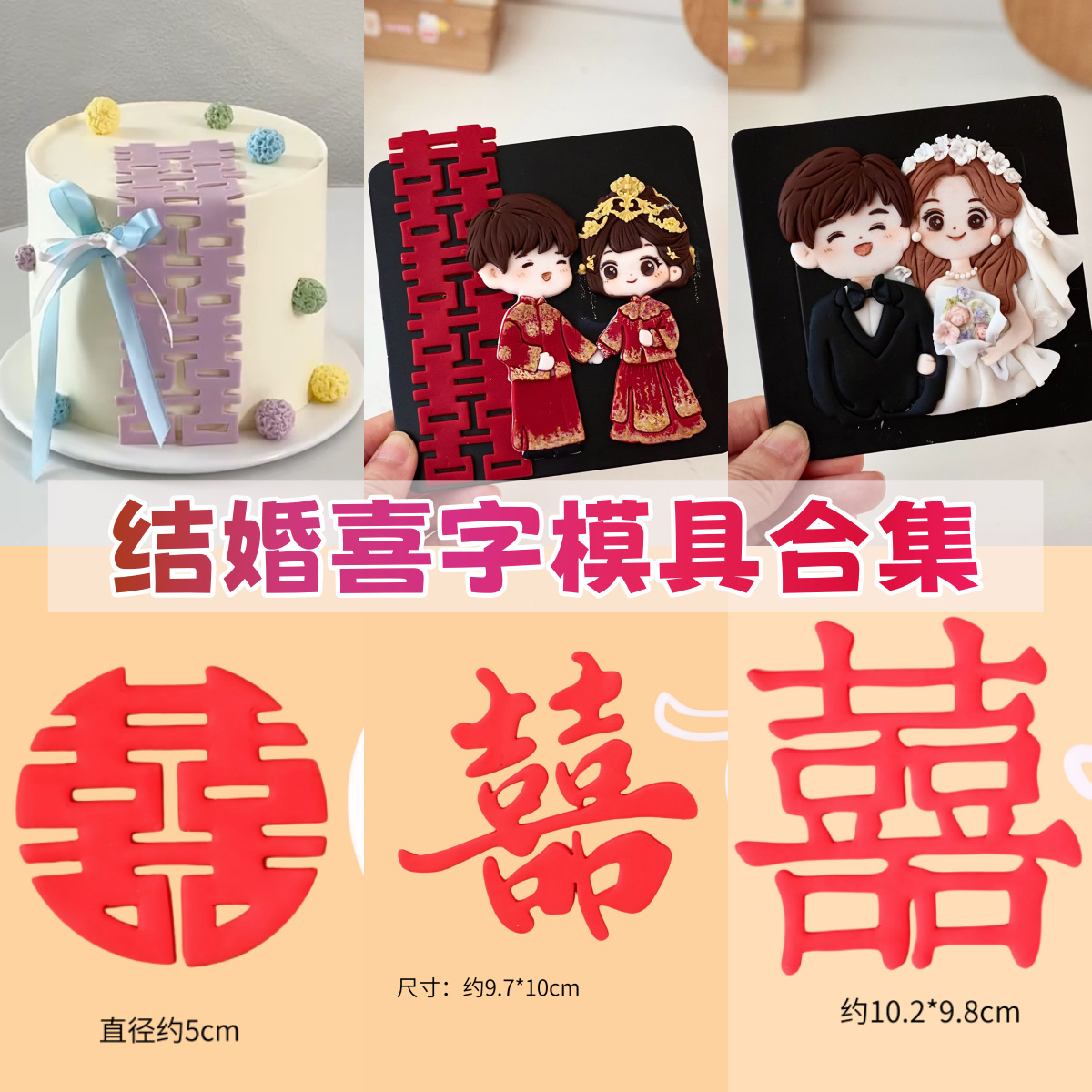 3D フォンダンモールド中国の結婚式と婚約フォンダン切断モールドラウンドハッピーワードフォンダンプレスモールドケーキベーキング