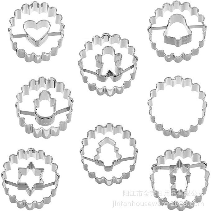 8ピースセットlinzerクッキーカットステンレスクッキーナイフクリスマスケーキ金型フォンテーヌジャムクッキーカット型