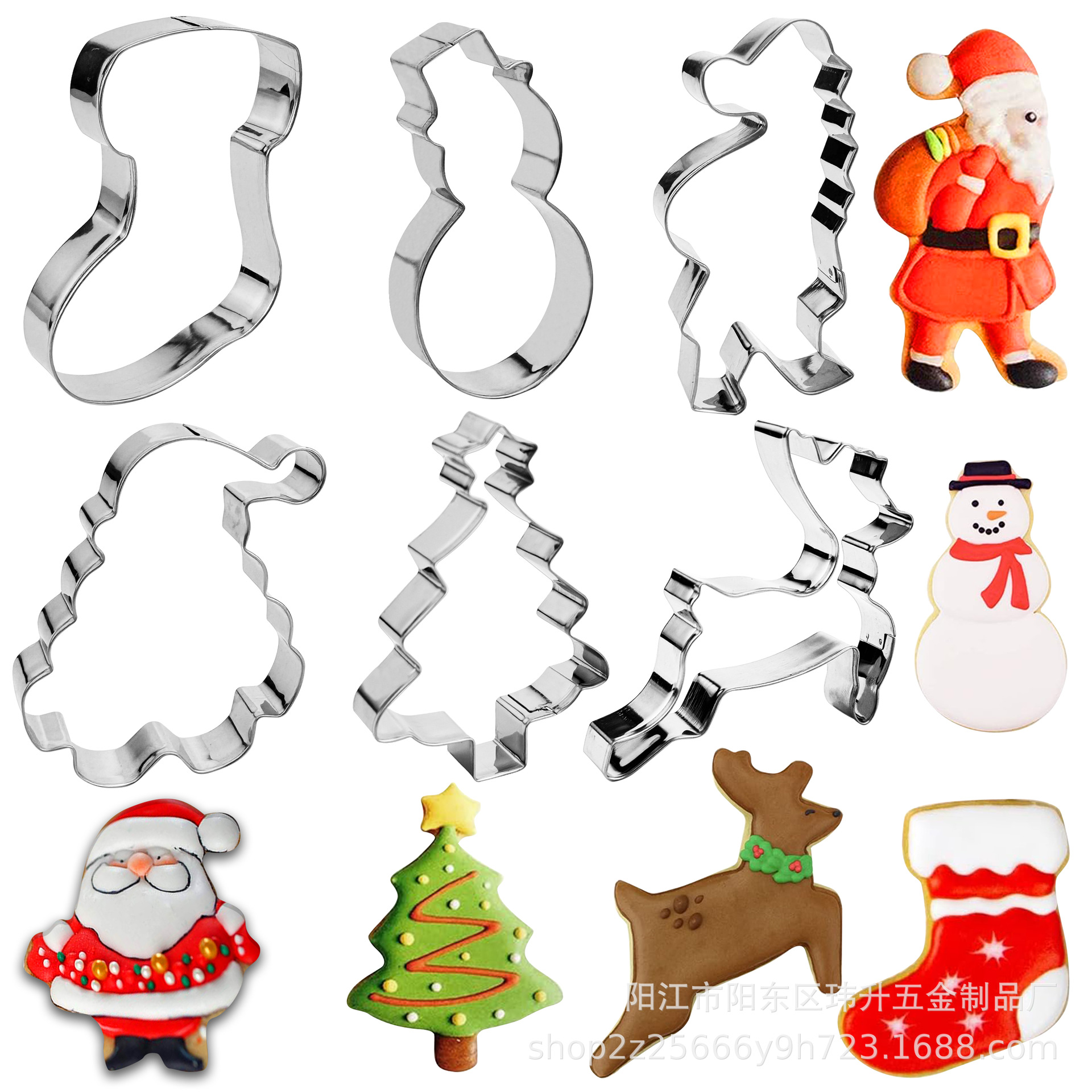 6ピースクリスマス形状クッキー金型ステンレス焙煎クッキーカッターサンタクロースツリーソックス雪だるまトナカイ