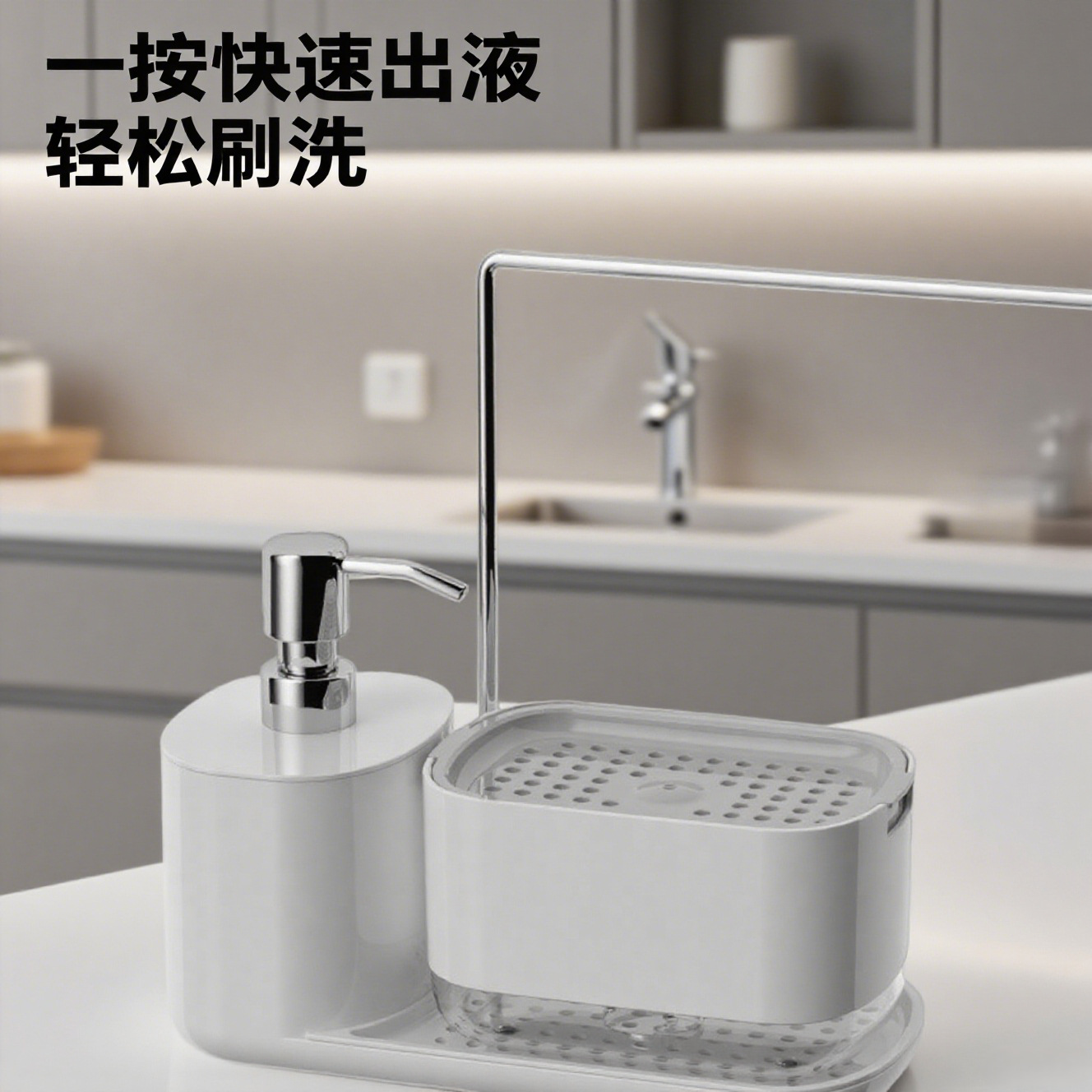 手动プッシュソープ液体ボックスキッチンデスクトップステンレス钢雑巾ラック洗浄精出液器シェルフの石鹸ボックス