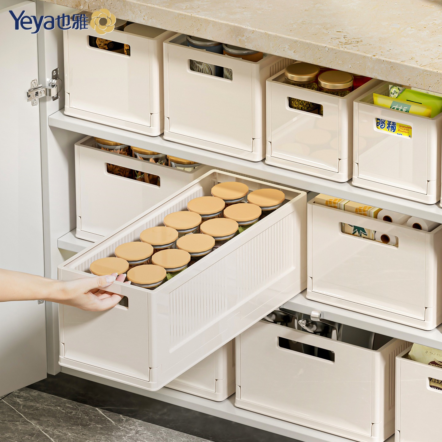 Yeya キッチンディープキャビネット雑貨スナックオーガナイザーデスクトップ収納ボックスキャビネット長方形白厚みのある収納バスケット