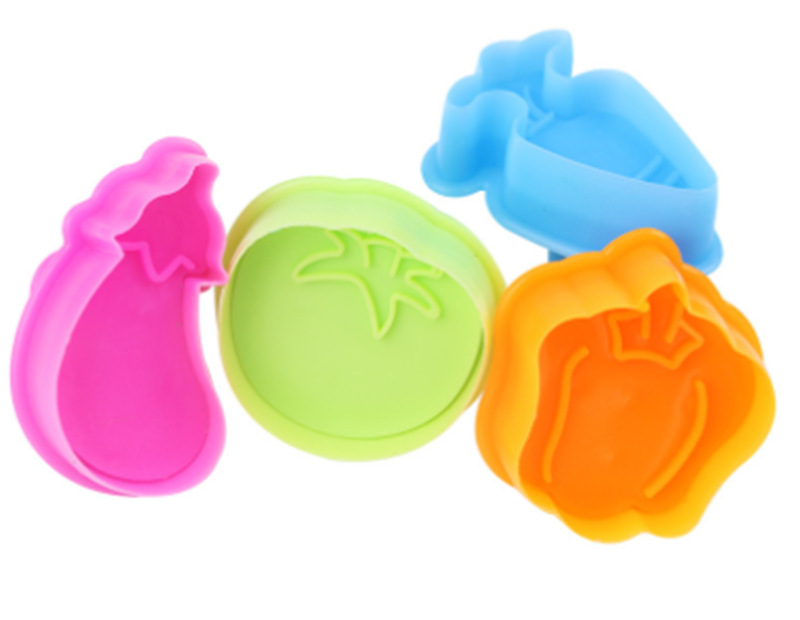 砂糖をひっくり返して3d立体の取っ手はプラスチックのビスケットの型の野菜のナスの大根のトマトのカボチャのケーキを押して型を切ります。