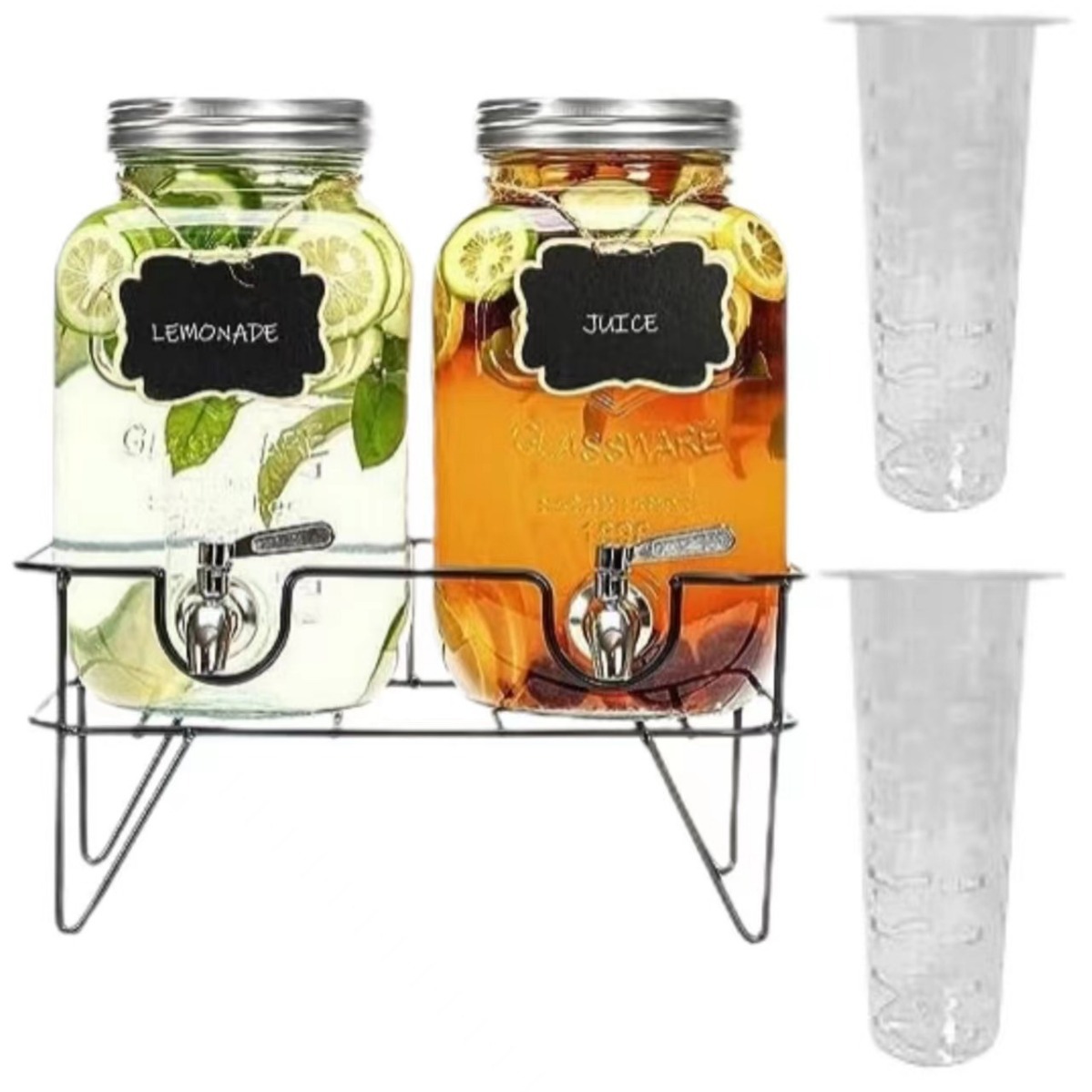 大容量のガラスのジュースの缶のレモン水の分配器は蛇口の鉄の芸の棚の2つの氷の飲み物のコーラの桶を詰めます。