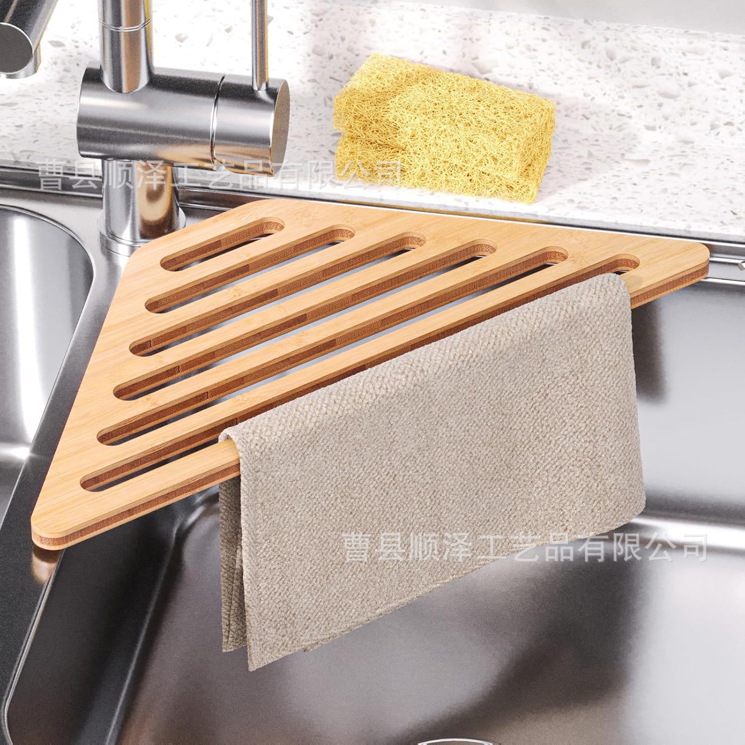 クロスボーダー竹木製シンク排水ラック三角形食器乾燥ラック洗面台石鹸ラックポータブル排水ラック