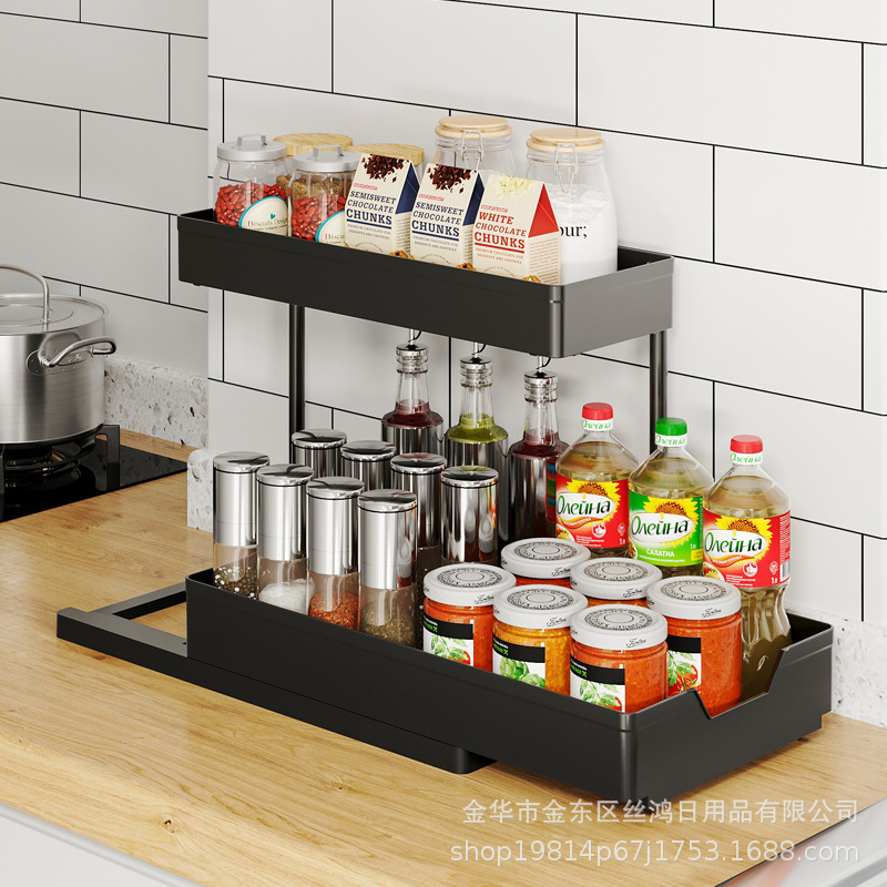 引き出し式調味料棚デスクトップ収納整理棚簡易厨房多機能調味料収納棚