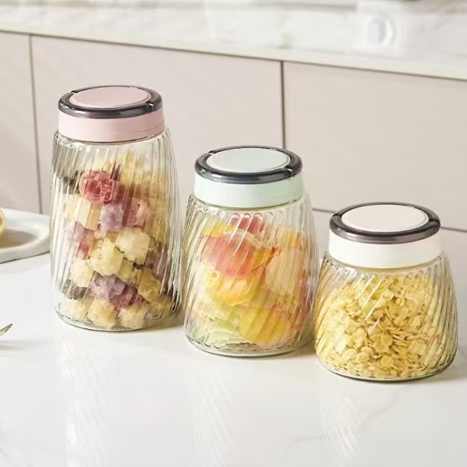 ネジ付きガラスハンドル保存瓶密封瓶透明キッチン鮮度保持茶ワインガラス瓶ラウンド保存瓶