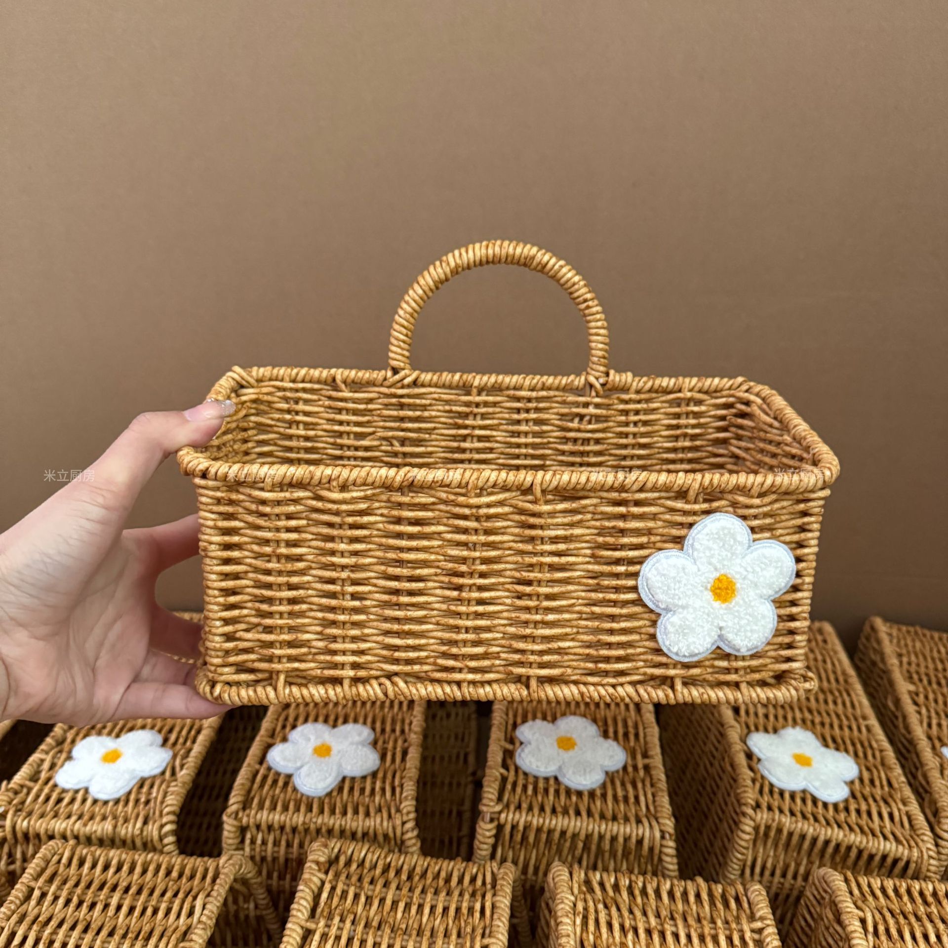 Mili キッチン生姜とニンニク収納バスケット模造籐織りハンギングバスケットキッチン生姜とニンニク収納ボックス装飾壁掛けフラワーバスケット