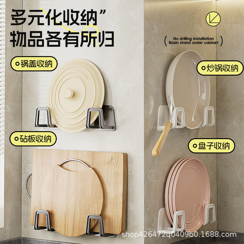 穴のないキッチンスポンジラック収納ラック壁掛け浴室シームレスフック粘着クロスボーダー鍋蓋ラック