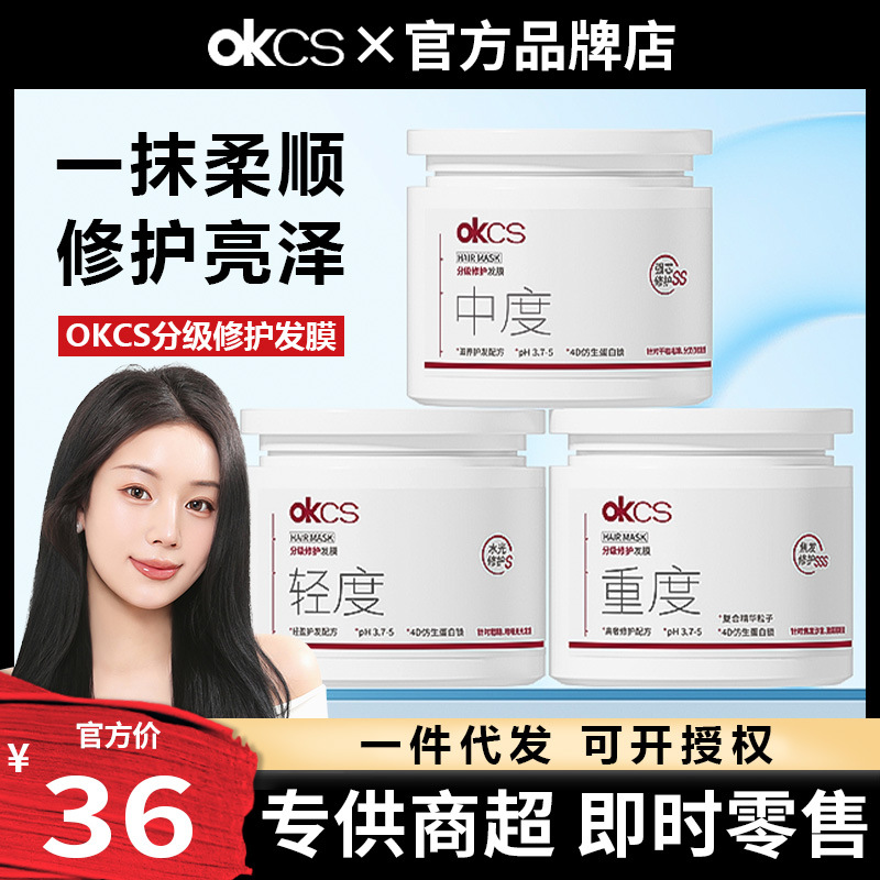 OKCS ヘアマスクは乾燥を修復し、潤いを与え、滑らかにし、染めたりパーマをかけたりして傷んだ髪を修復します。女性向けのグレード別修復コンディショナーで縮れを改善します。