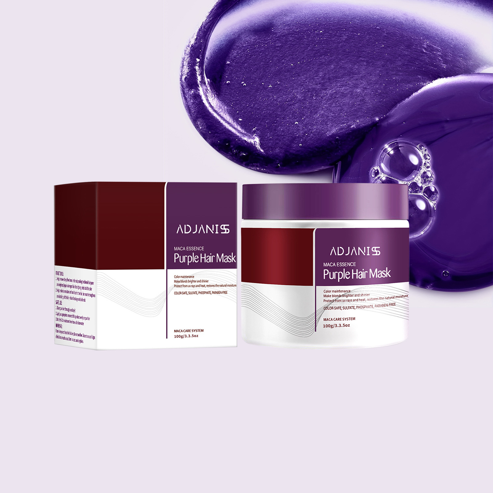 紫色のヘアマスクで、色を固定し、輝きを出し、グレーに染まった髪を柔らかくし、栄養を与え、紫色のヘアケアで髪に潤いを与え、輝きを与えます。
