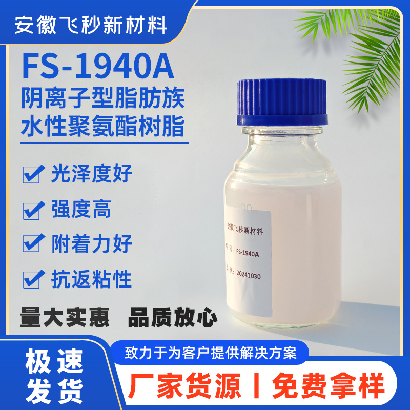 安徽フェムト秒陰イオン水性ポリウレタン FS-1940A PVC および革の光沢仕上げに使用