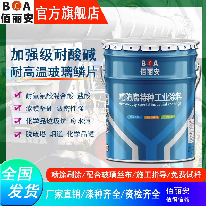 耐フッ化水素酸混合酸ビニル重防腐ガラス鱗片塗料エポキシフェノールガラス鱗片上塗り塗料