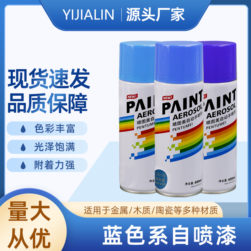 400mlブルーセルフ塗装手回し自動車家具用防錆壁面金属落書き色改色スプレー缶