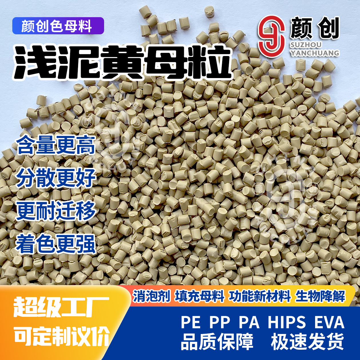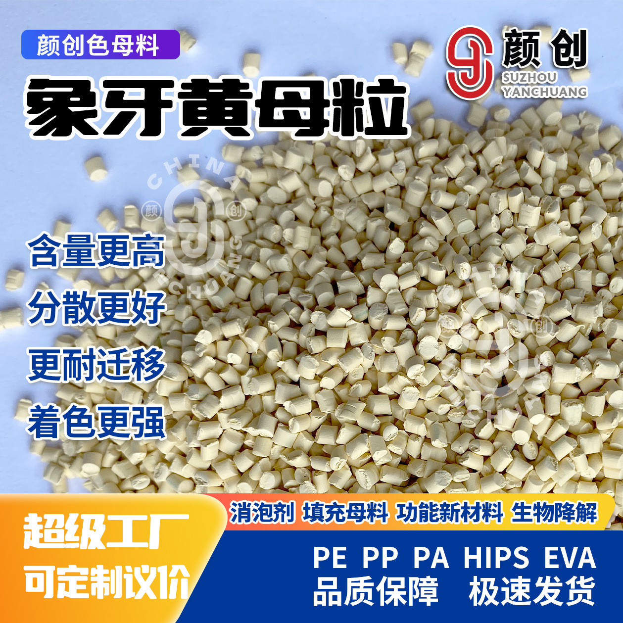 顔創PE高濃象牙黄色母粒吹膜級射出高温ビニール袋包装管材共通