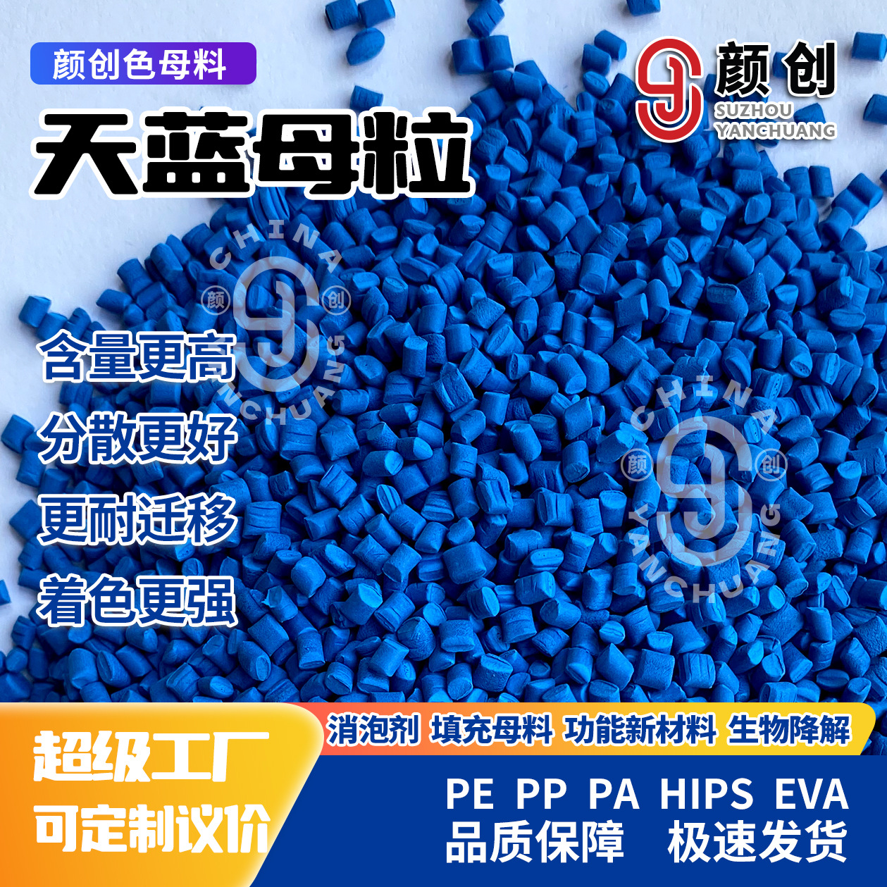 顔創PE高濃紺色母粒吹膜級射出高温ビニール袋包装管材シート共通