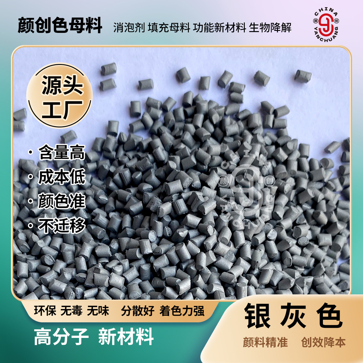 環境保護銀灰色母粒PP PE ABS高濃度射出ブロー染色通用母粒工場直売