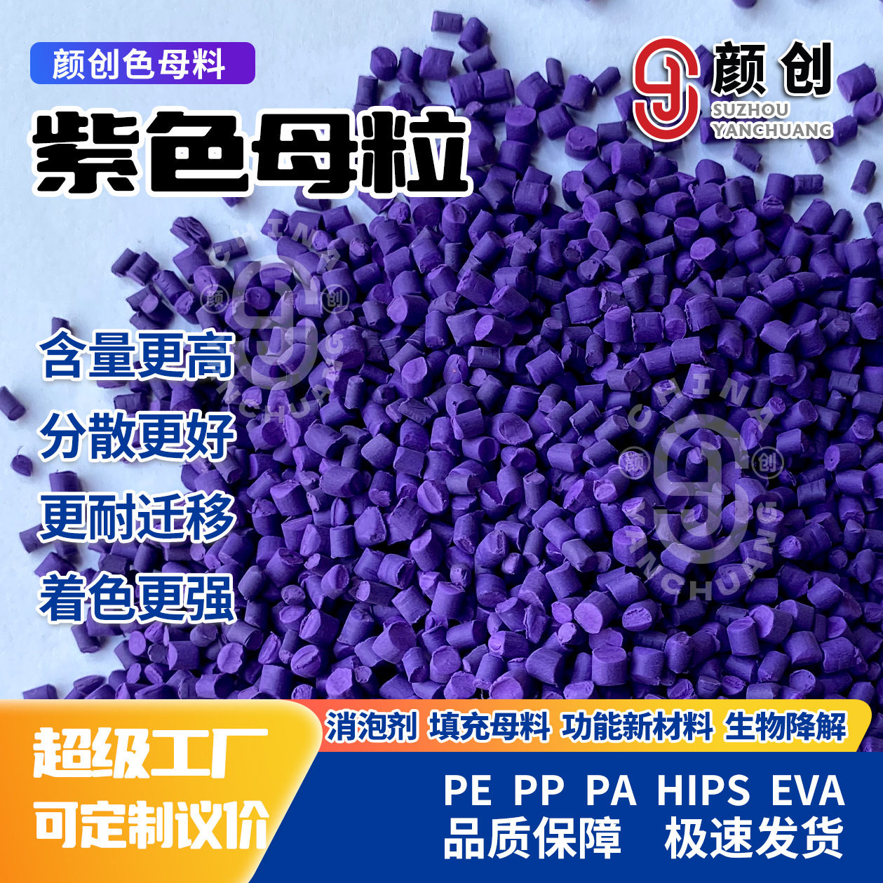 PE紫色マスターバッチ高分散性エクスプレスバッグ/包装ブローフィルム射出成形品利用可能颜创工场ストレート