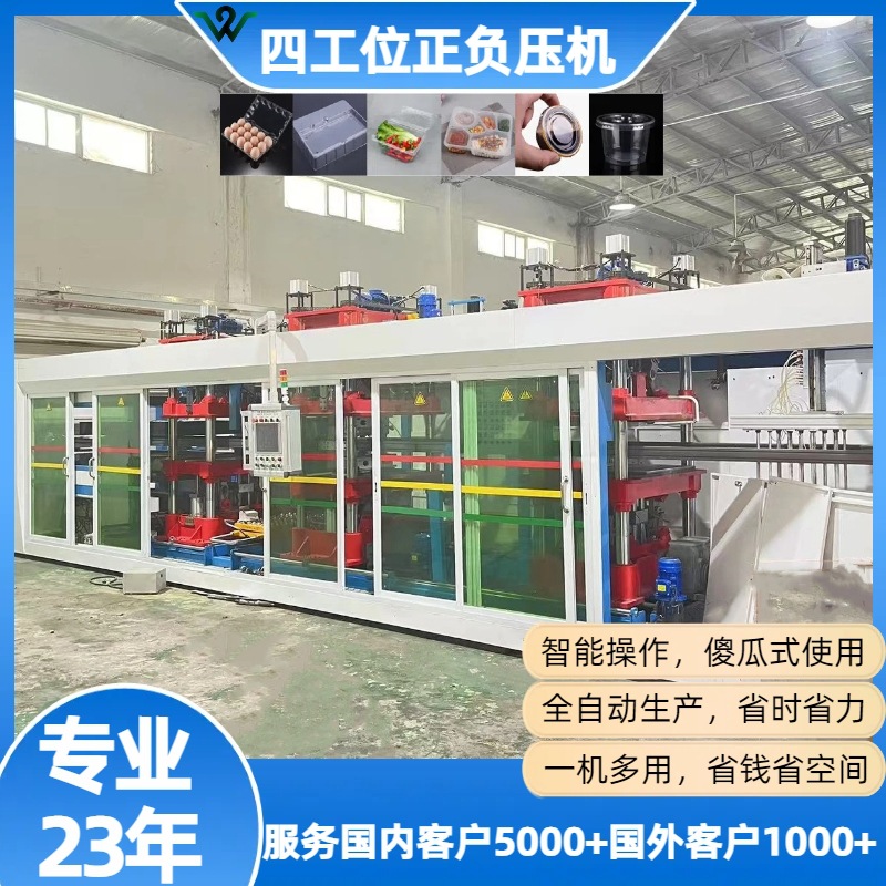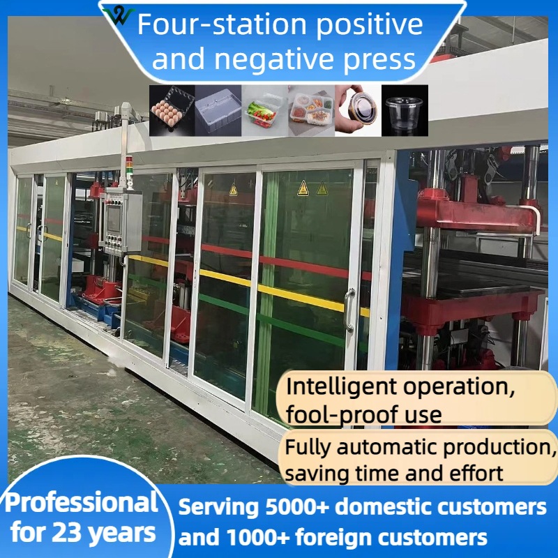 90% 新しい全自動 4 ステーションプラスチック卵トレイ製品包装装置正負圧一体成形機