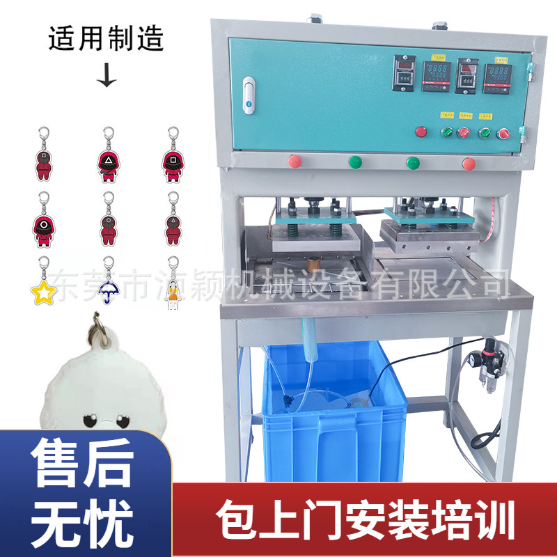 ソフトプラスチックキーホルダー、ジッパーヘッドなどの両面製品の熱プレス成形および冷間プレス成形機