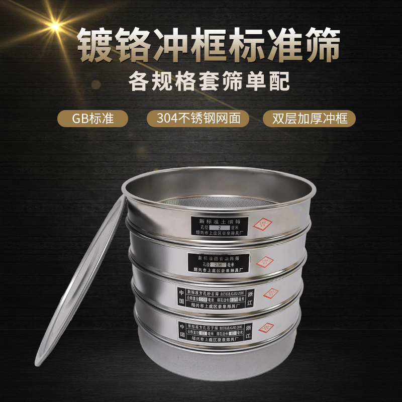二層厚いクロムメッキ標準ふるい304ステンレスメッシュふるい枠一体標準土壌ふるい