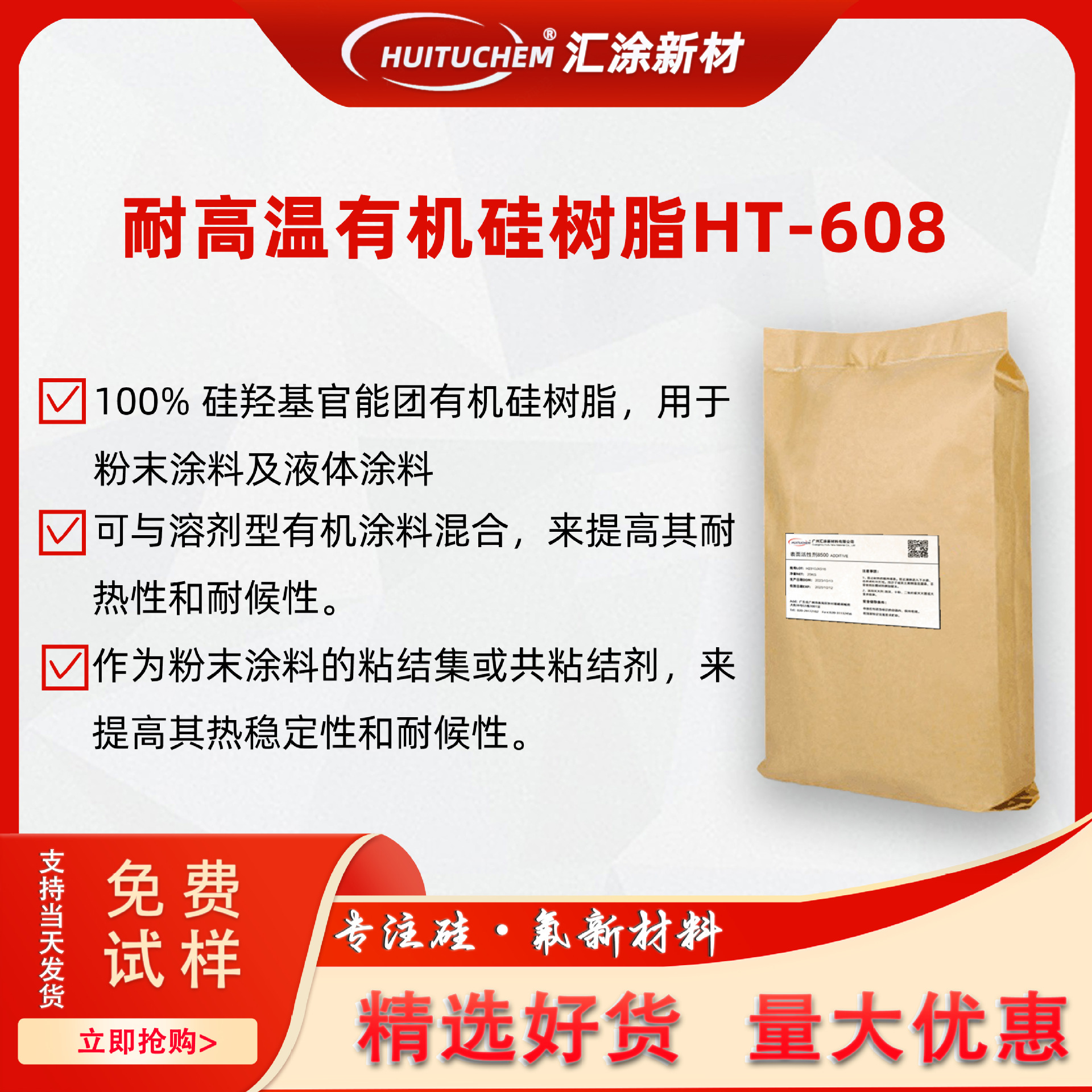シリコーン樹脂HT-608耐高温耐候性シート樹脂ht608粉体塗料または液体樹脂