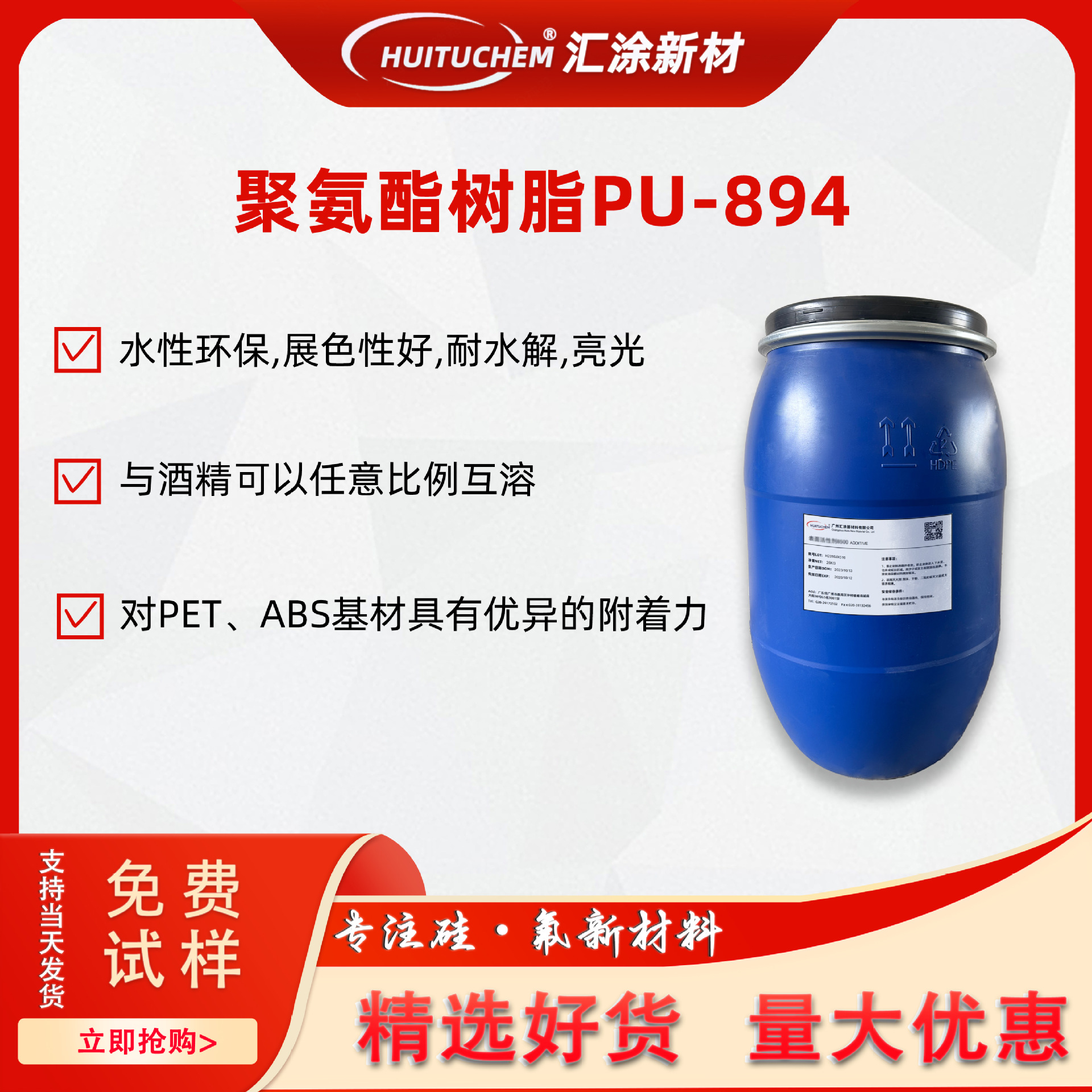 水性光沢樹脂PU-894水性ポリウレタン樹脂ハイライト高透樹脂耐加水分解耐熱樹脂