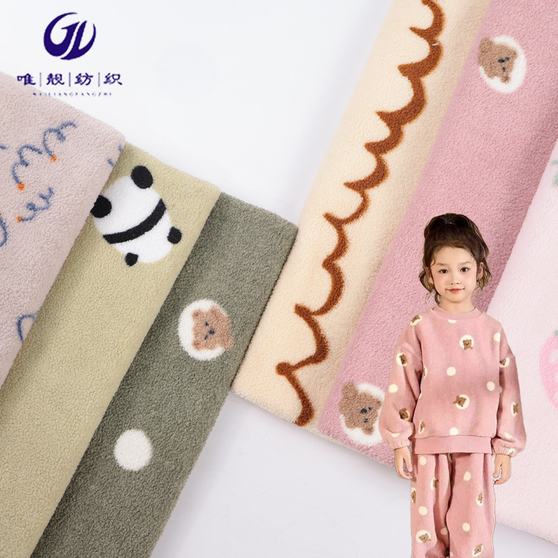 現物の経典の動物のプリントの雪の粒のフリースの半分のフリースの生地の秋冬の子供服のパジャマの家庭服の子供服の子供服の生地
