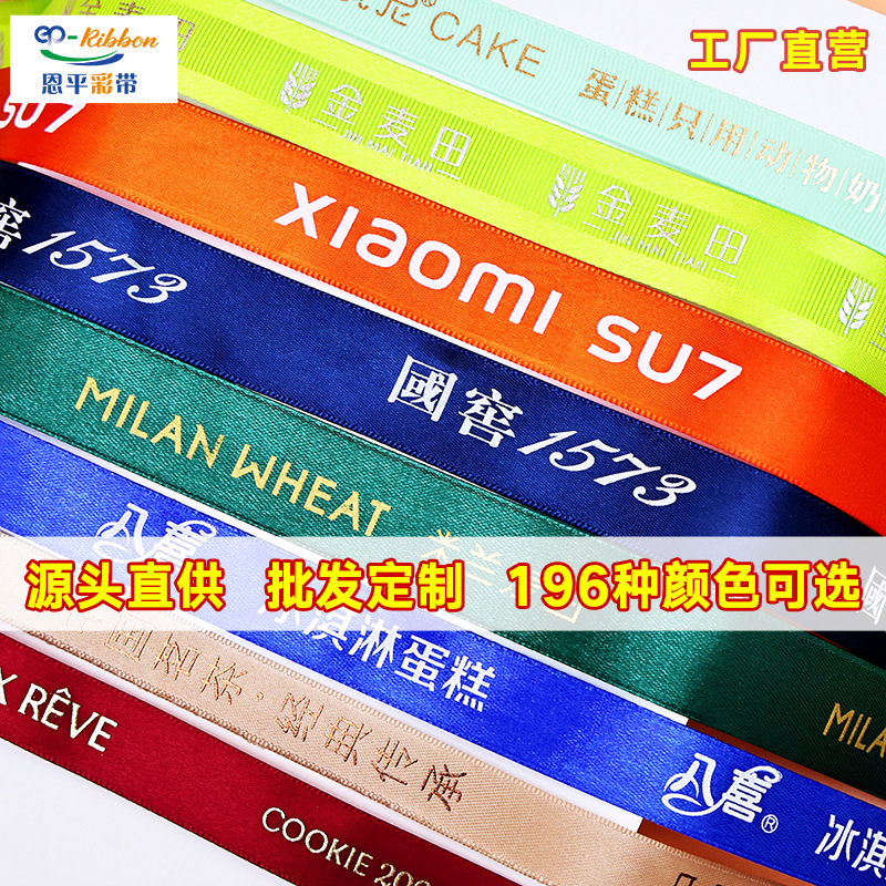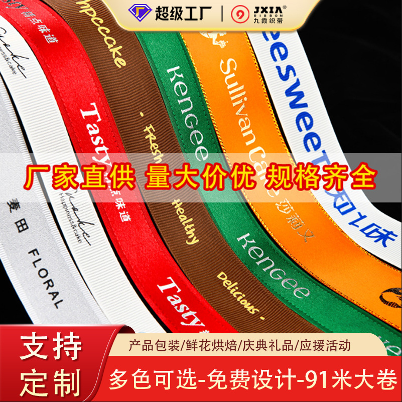 特別版リボンカスタムロゴ印刷花結婚式の装飾リボン包装印刷商標ストラップ高密度リボン