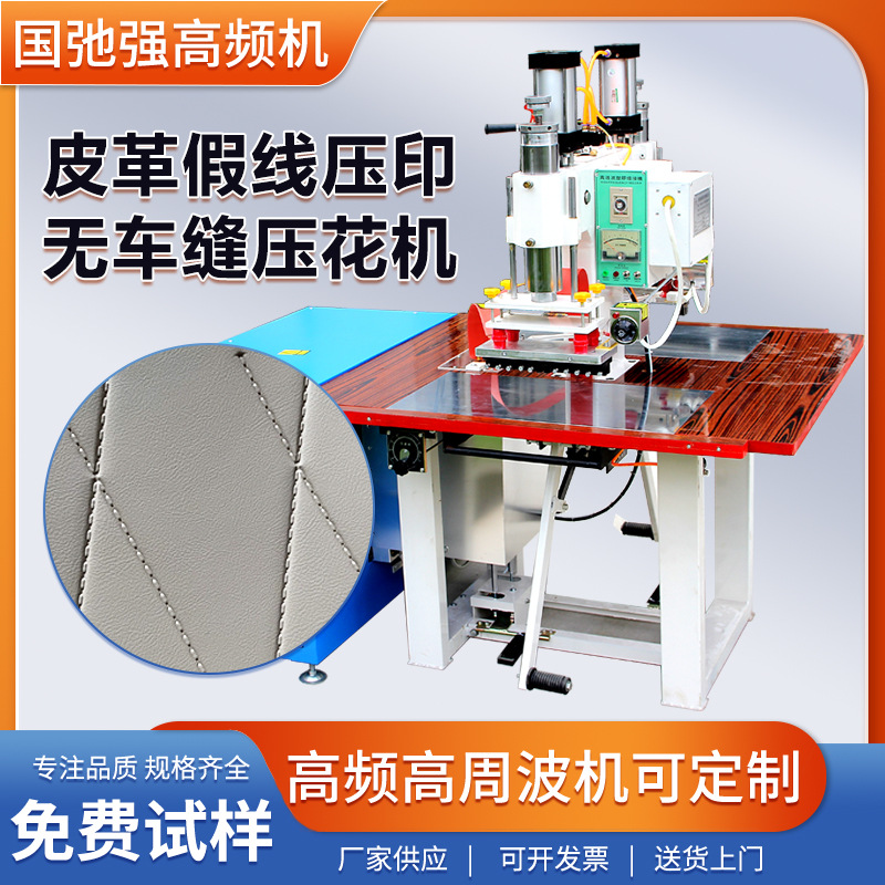 両頭フットペダル高周波機、模造革シームレスエンボス加工機、革凹凸圧着線感高周波機