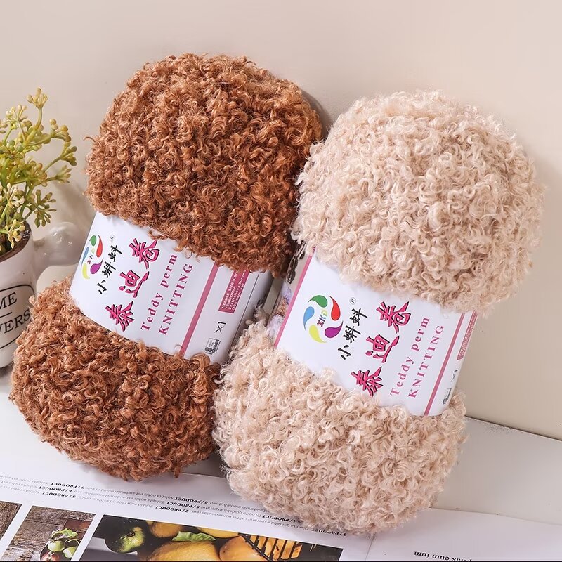 テディ巻きウールループパイル毛糸手作りdiy50g编みインスタ风スカーフ帽子漫画人形糸