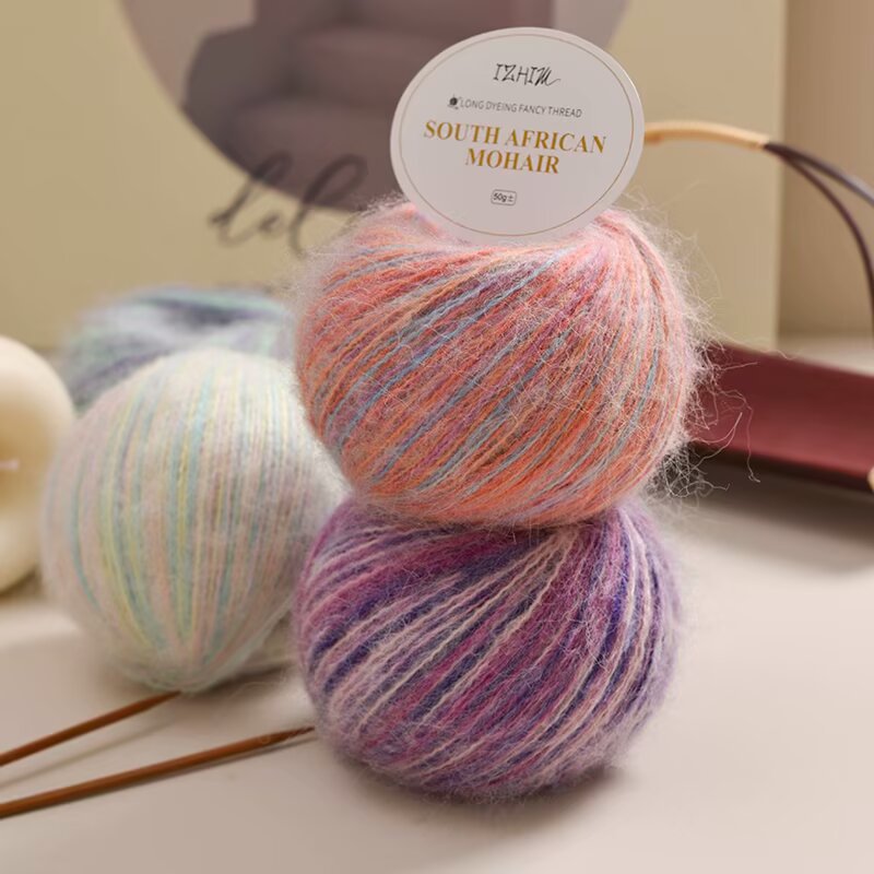 新製品麗江雲グラデーションセクション染めモヘア手編みかぎ針編みセータースカーフファインウール糸 50 グラム