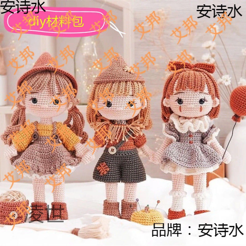 Diy材料バッグ女の子毛糸かぎ針編み秋魔女人形手織りかわいい置物非完成品