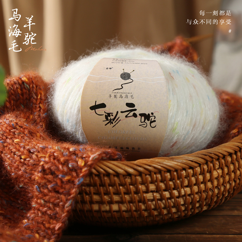幻彩真珠綿混紡糸馬海毛花式特殊丸糸4S/1セーターマフラー糸
