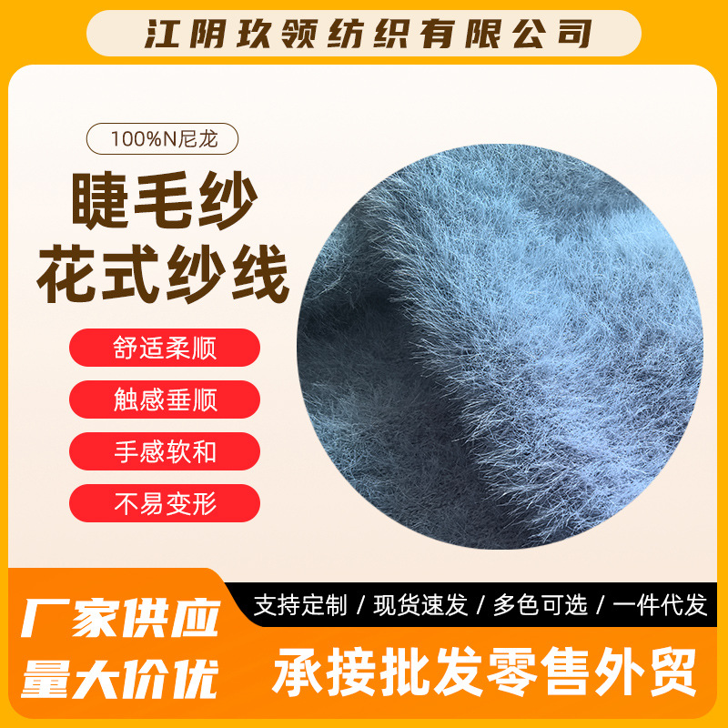 メーカー在庫卸売 100% N ナイロンまつげ糸スカーフ枕ブランケット素材ファンシーライン卸売