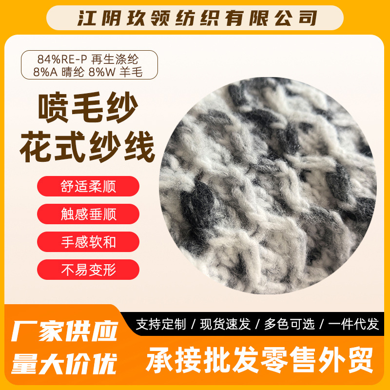 84%RE-P リサイクルポリエステル 8%A スパンデックス 8%W ウール スプレー糸